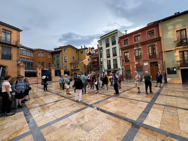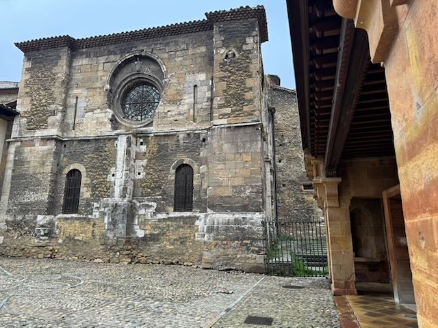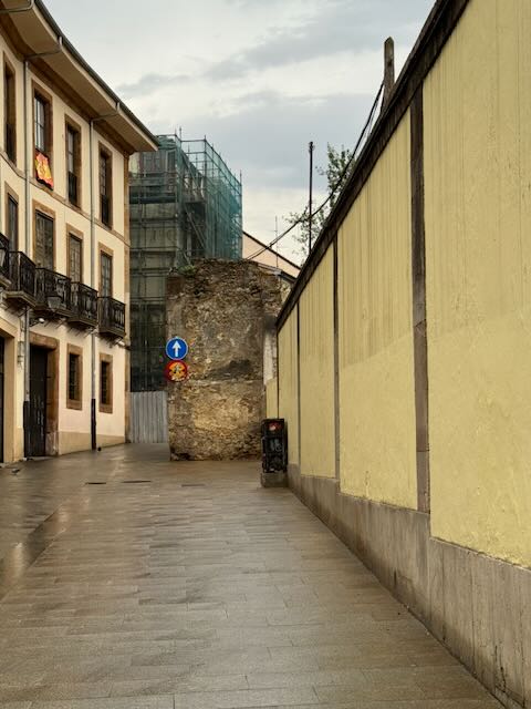 It was an intermittently rainy morning when we set out on our tour of Oviedo. Our local guide, a very interesting and enthusiasatic fellow, pointed out the Muralla Medieval de Oviedo, the largest remaining section of the city walls that were commissioned by Alfonso X in about 1260; they protected the city for centuries.