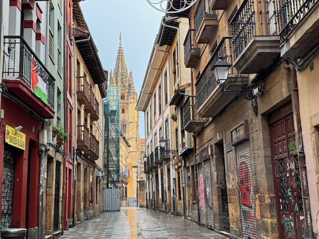 The City of Oviedo, the capital of the autonomous community of Asturias, is notable for several reasons: 1) it was established in the 8th Century, and offers distinctive opportunities to see Romanesque and later medieval architecture; 2) it is the site of more than one hundred open-air statues; 3) it is considered an important stop by pilgrims travelling to Santiago de Compostela (our next destination, too) ; and 4) it may be the cleanest city on the planet.
